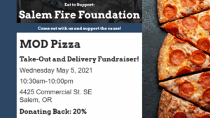 Visit MOD Pizza’s online order website. Use the promo code of “GR186557S” and 20% of your meal’s price will be donated back to Salem Fire Foundation.